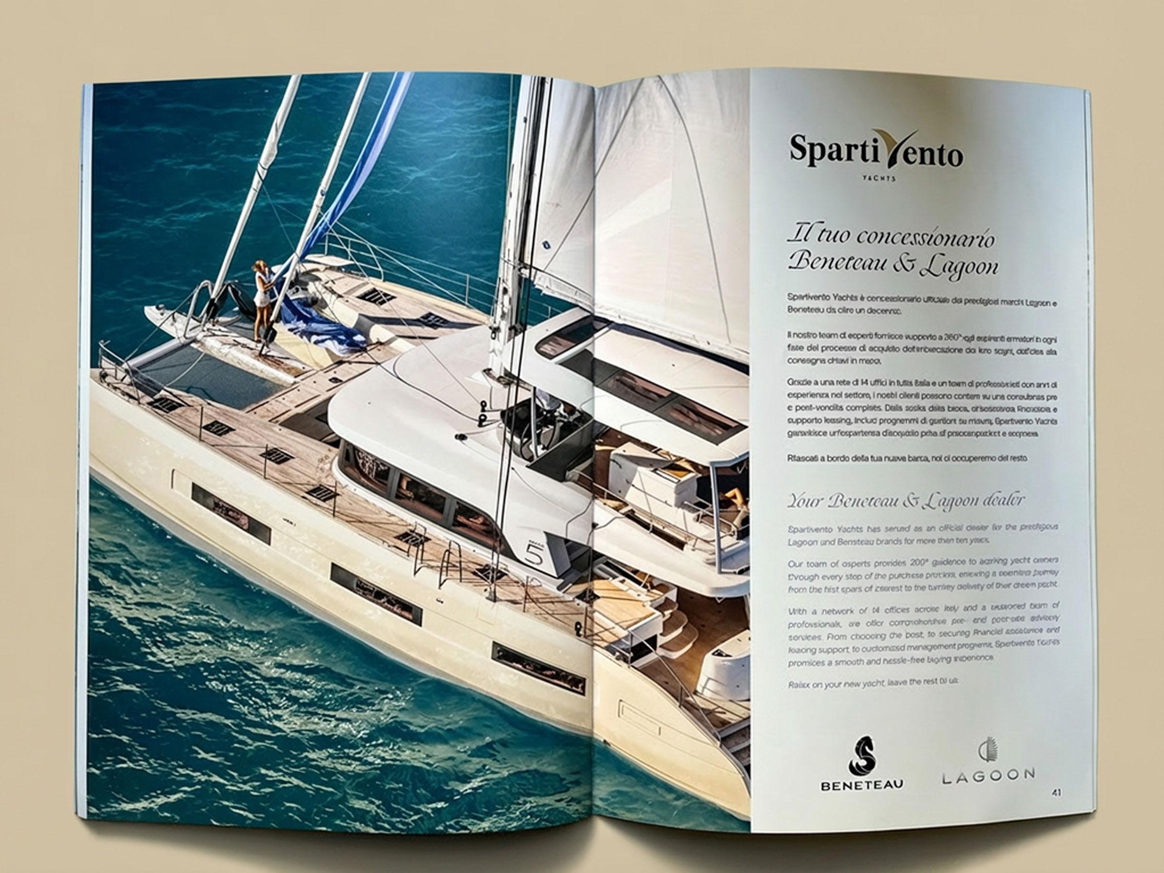 Revista-catálogo para a marca italiana de charter náutico. A Spartivento possui a maior frota marítima do sul da Itália, com mais de 100 barcos, entre veleiros e catamarãs, que circulam pela Sicília, Costa Amalfitana, Toscana e Sardenha.